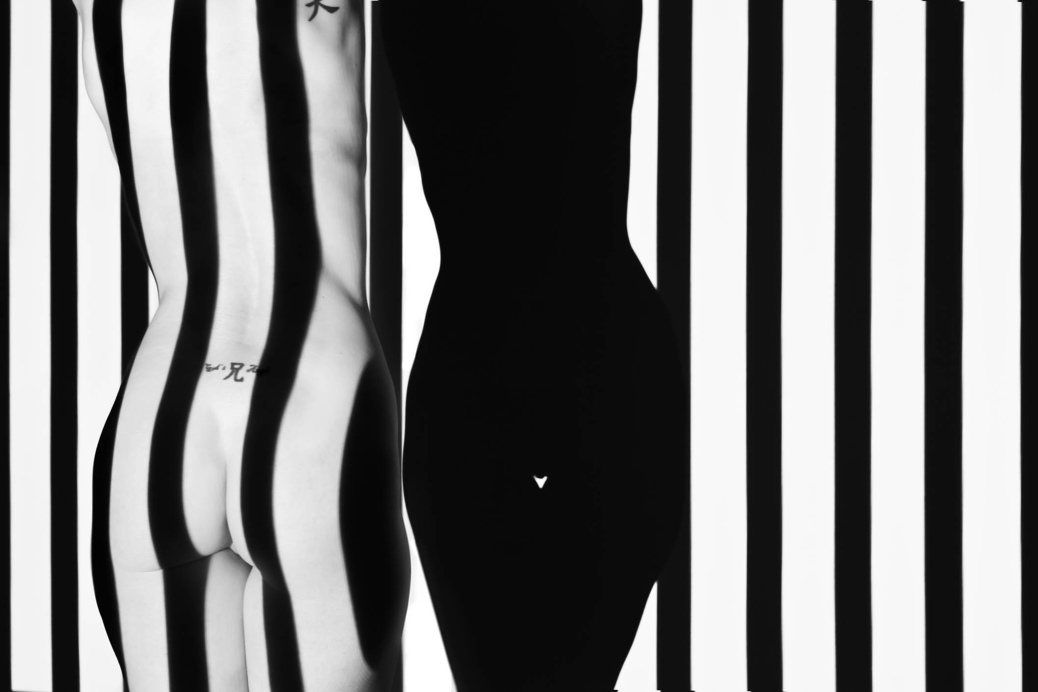 Stunning nude torso light painted with black and white stripes